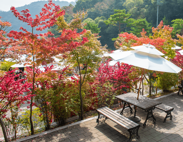 - 휴식: 분재원 옆 데크 의자에서 커피 한 잔하며 단풍 구경하면 여유 만점.